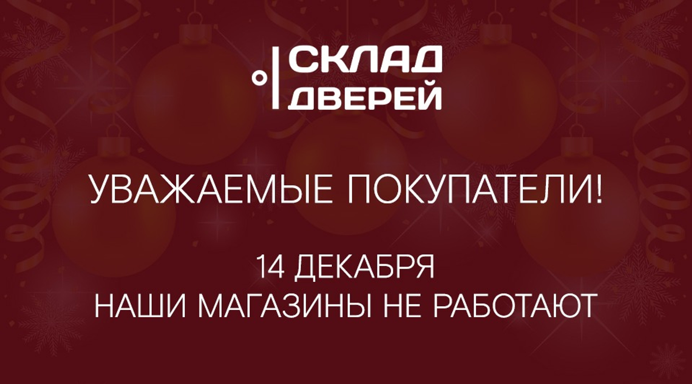 Уважаемые покупатели! Обратите внимание - 14 декабря магазины "Склад дверей" не работают.